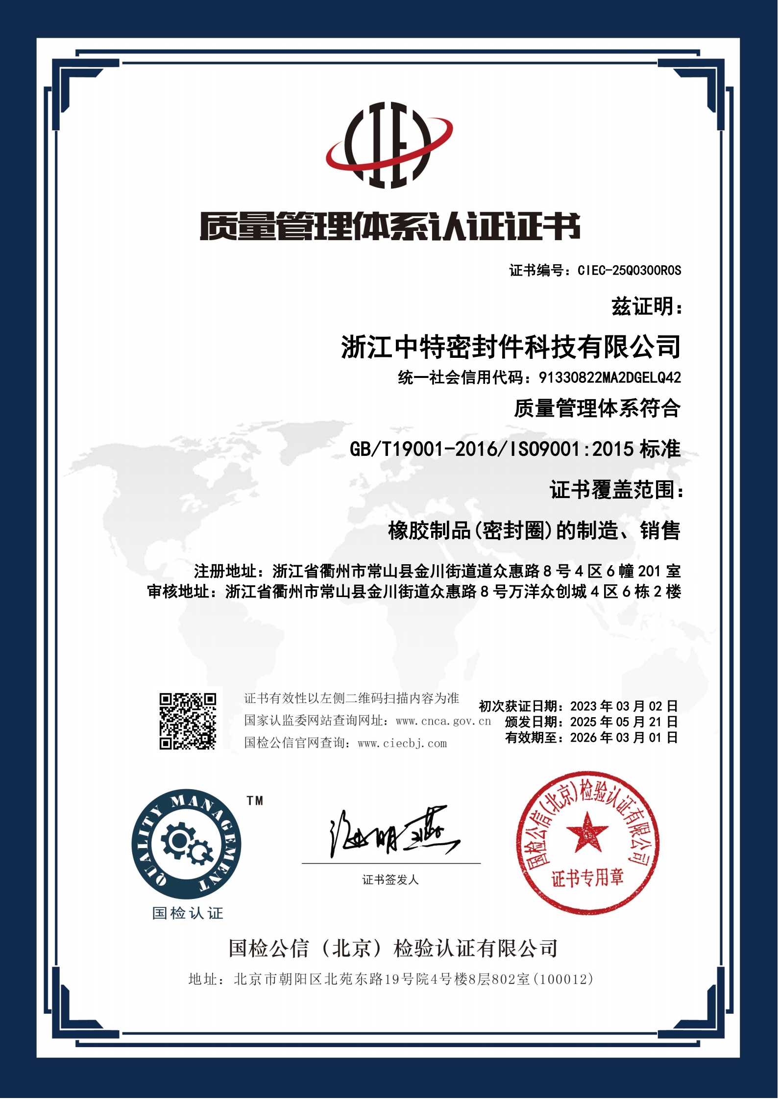 ISO9001证书中文